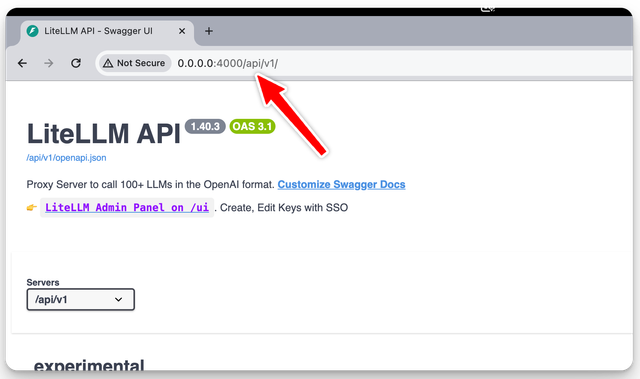 After running the proxy you can access it on http://0.0.0.0:4000/api/v1/ (since we set SERVER_ROOT_PATH="/api/v1")