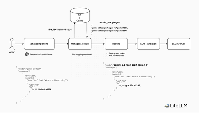 haimaker stores a mapping of the litellm file id to the model-specific file id in the postgres DB. When a request comes in, haimaker looks up the model-specific file id and uses it in the request to the provider.