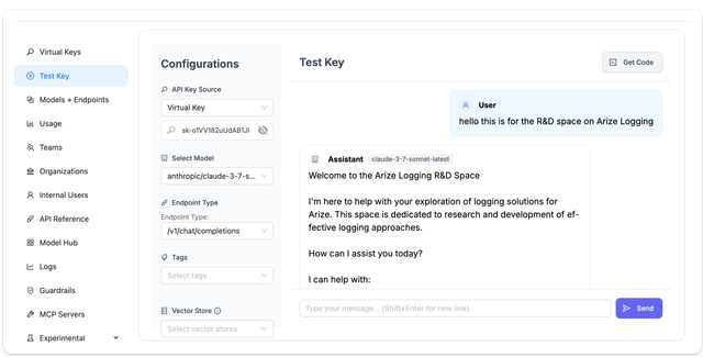 Use the new key to make a test LLM API Request, we expect to see the logs on your logging provider configured in step 1.